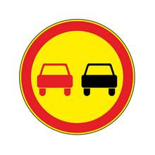 Знак 3.20 обгон запрещен дорожный на желтом фоне