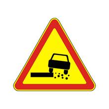 Знак 1.18 выброс гравия из под колес на желтом фоне дорожный предупреждающий