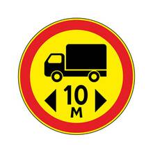 Знак 3.16 ограничение минимальной дистанции дорожный на желтом фоне