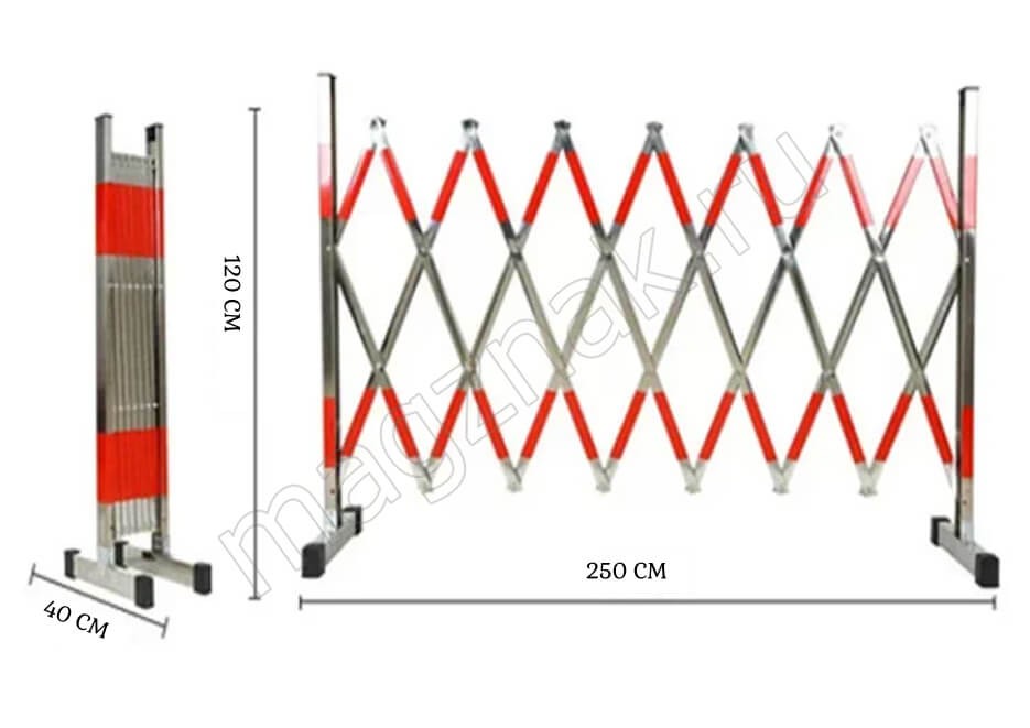 Раздвижное ограждение - барьер защитный "гармошка" металлический переносной из нержавеющей стали