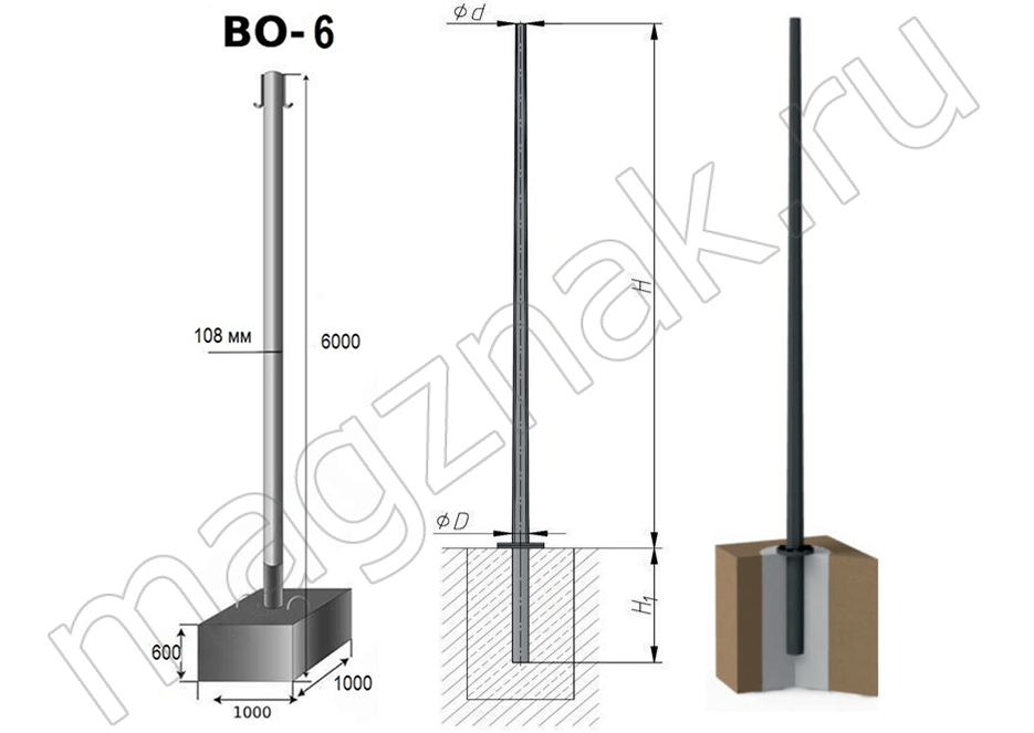 Временная опора ВО-6 – это одна из самых востребованных моделей для организации временного электроснабжения объектов. Данный временный столб ВО 6 (6000мм) предназначена для подключения электричества, создания временного освещения и прокладки силовых линий на стройплощадках.