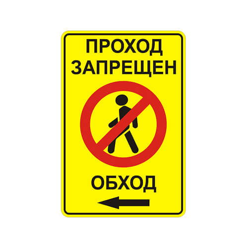 Купите дорожный знак 3.10 «Проход закрыт. Обход влево» для безопасной организации движения пешеходов на тротуарах и пешеходных зонах. Доставка по Москве и РФ!