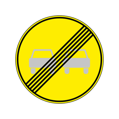 Купите временный дорожный знак 3.21 «Конец запрещения обгона» на желтом фоне для корректного завершения зоны полного запрета обгона после участков временных дорожных работ. Доставка по Москве!