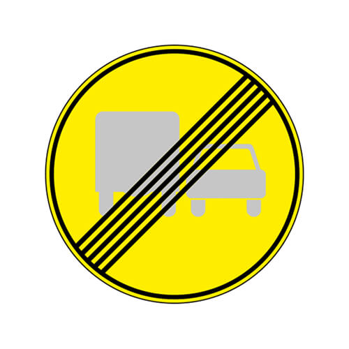 Знак 3.23 конец запрещения обгона грузовым автомобилям на желтом фоне